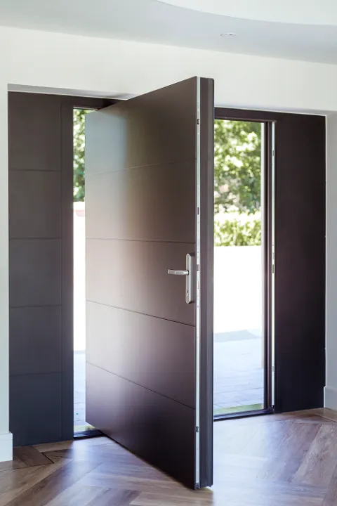 Pivot doors operate using a central pivot point rather than traditional side hinges. This design allows the door to rotate smoothly around a fixed axis, enabling much wider and taller door openings than conventional doors. The unique mechanism also allows for a dramatic entry experience while maintaining effortless functionality and balance.